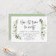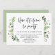 Tarjeta de invitación de boda con tema de jardín de verano con hojas verdes y escritura negra moderna (Ahora es hora de fiesta). Es perfecta para su recepción de boda / fiesta de celebración después de la boda. Agregue sus detalles en fuente / letra negra coincidente.