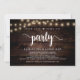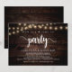 Ahora es hora de fiesta, Anuncio de fuga de boda / Tarjeta de invitación, en diseño de madera de granja rústica y luces de cuerda. Esto es perfecto para la recepción de su boda y la fiesta de celebración después de la boda. Agregue sus detalles en letra / letra coincidente.