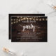 Ahora es hora de la fiesta, Anuncio de huida de boda / Tarjeta de invitación, en diseño de luces de cuerda de madera de granja rústica. Esto es perfecto para la recepción de su boda y la fiesta de celebración después de la boda. Agregue sus detalles en letra / letra coincidente.