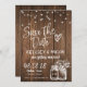 Invitación Ahorra la fecha de madera rústica con frascos de M