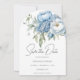 Invitación Ahorra la Fecha Floral Azul Hielo