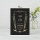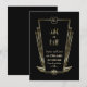 Diseño de tarjeta vintage y glamuroso único que presenta una forma art déco dorada falsa con un escudo para sus iniciales, Fleur-de-lis dorada falsa como herencia real, un estilo Roaring 1920's Great Gatsby, estilo antiguo Hollywood, fuentes hermosas en un fondo negro. Utilice la herramienta Personalizar para agregar su información. Para más, visite mi colección de bodas con monograma arte déco Royal Gold.