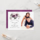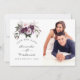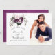 Tarjetas de foto de guardar la fecha de boda de acuarela pintadas a mano con flores boho de violeta, melocotón y ciruela diseñadas para ser personalizadas rápida y fácilmente según los detalles de su evento.