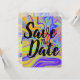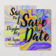 Anuncia tu boda con estilo con esta tarjeta de Save the Date colorida.