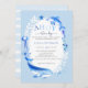 Haga olas con esta elegante invitación a la ducha de bebé con un elegante tema monocromático del océano. Titulado "Ahoy Es un chico", este diseño es una versión moderna del clásico motivo submarino, ilustrado completamente en tonos oníricos de azul. Un marco oval cohesivo muestra obras de arte acuáticas detalladas de una ballena, delfín, cangrejo, medusas, caballitos de mar, pez estrella y conchas marinas, acentuadas por algas blancas delicadas para lograr un sorprendente contraste. Las acuarelas pintadas a mano crean una composición serena pero vibrante, perfecta para acoger a un niño. En la parte posterior de la tarjeta se han colocado unas suaves franjas de color azul que le dan un toque náutico atemporal al diseño general. Ideal para una celebración costera, una ducha infantil con temática playera o un fiesta submarino, esta invitación es totalmente personalizable para su evento. Bonita mezcla de encanto marino y minimalismo moderno.