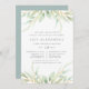 Elegante invitación botánica acuarela para el murciélago mitzvah de tu hija enmarca tu ceremonia religiosa y detalles fiestas con un borde de puro follaje verde pastel.