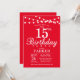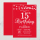 15a Invitación de cumpleaños con String Lights. Fondo Rojo.Cumpleaños de niños. Invitar a niño o Chica Bday. 13. 15. 16. 18. 20. 21. 30. 40. 50. 60. 70. 80. 90. 100. Cualquier edad.