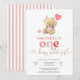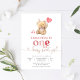 Celebra el momento especial de tus pequeños con esta adorable invitación de cumpleaños del primer año del osito de peluche. Con un diseño pastel con un oso lindo que sostiene un globo con corazón, fuentes juguetonas y encantadores acentos rosados, esta tarjeta establece el tono perfecto para una fiesta dulce y memorable. Personaliza con el nombre de tu hijo, los detalles de la fiesta y la información de RSVP para crear un recuerdo que los invitados amarán. Ideal para cumpleaños de niñas, esta invitación combina la fantasía y el calor para hacer que tu celebración sea inolvidable.