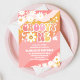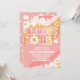 Celebra el día especial de tus pequeños con esta invitación de cumpleaños número uno retro y genial. Con rayas onduladas en rosa, naranja y amarillo, margaritas juguetonas, signos de paz, corazones y estrellas, este diseño alegre captura la diversión de los años 70. La tipografía caprichosa y los colores vibrantes la hacen perfecta para una fiesta temática boho, hippie o flower power. Fácilmente personalizable con los detalles de tu fiesta, esta invitación establece el tono para una celebración alegre e inolvidable.