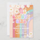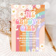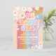 Celebra el hito de tus pequeños con esta invitación de primer cumpleaños retro inspirada y llena de energía. Con colores pastel de arcoíris, margaritas juguetonas, mariposas, corazones y signos de paz, este diseño alegre establece el tono perfecto para una fiesta divertida y vibrante. La tipografía en negrita y los detalles caprichosos hacen que sea fácil personalizar mientras se crea un recuerdo memorable. Ideal para temas boho, retro y flower power, esta invitación trae paz, amor y alegría a tu celebración.
