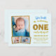 divertida invitación al primer cumpleaños azul y dorado ONE y rockeándolo