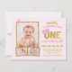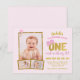 divertida invitación rosa y dorada al primer cumpleaños