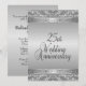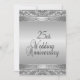 Elaboradas invitaciones de aniversario de bodas de plata para una recepción / fiesta de bodas de 25 años. Parte delantera y trasera de plata con texto negro en la parte posterior que da un aspecto elegante a esta invitación de aniversario única.