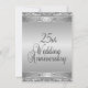 Elaboradas invitaciones de aniversario de bodas de plata para una recepción/fiesta de bodas por el 25 aniversario. Frente y dorso de plata con texto negro en la parte posterior que da un aspecto elegante a esta invitación de aniversario única.