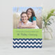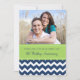 Personalizado foto tarjeta de invitación de fiesta del quinto aniversario del boda en divertido y moderno azul marino oscuro, brillantes tonos verde limón y zigzags de chevron blanco, elegante y contemporáneo. Personalizable con los detalles de su fiesta y su propia foto.