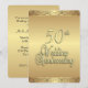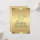 Elaboradas invitaciones doradas para una recepción/fiesta de 50º aniversario de boda. Parte delantera y trasera dorada con texto marrón en la parte trasera que da un aspecto elegante a esta invitación única de aniversario.