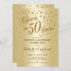 Invitación al 50º aniversario de boda. Tarjeta de invitación elegante con falso foil de oro brillante. Características de letra script y confeti. ¡Salud por 50 Años! Perfecto para una celebración de aniversario dorado cincuenta con estilo.