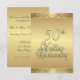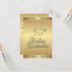 Elaboradas invitaciones doradas para una recepción/fiesta del 50 aniversario de bodas. Parte delantera y trasera dorada con texto marrón en la parte trasera que da un aspecto elegante a esta invitación única de aniversario.
