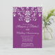 Nuestra Invitación a Aniversario Boda presenta un hermoso damasco blanco florido sobre un rico fondo violeta y moderno y es perfecto para un 20º aniversario, 25º aniversario, 30º aniversario, 35º aniversario, 40º aniversario, 45º aniversario, 50º aniversario o 60º aniversario. Fácil de personalizar con la información del fiesta del aniversario de su boda. Visite nuestra tienda para ver esta elegante y moderna invitación al boda aniversario en una amplia selección de colores modernos y modernos.