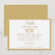 Esta invitación de aniversario de bodas presenta un motivo floral sobre un fondo blanco con un borde a rayas diagonales doradas/marrón. Está lista para ser personalizada y es adecuada como invitación de aniversario de bodas número 50 para una fiesta semiformal.