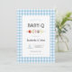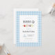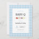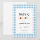 Prepárate para encender la parrilla y celebrar la llegada de tu bebé con esta invitación de Baby Shower Blue Gingham Baby-Q. Con un encantador fondo de gingham azul polvoriento, un jugoso pincho de agua y tipo en negrita, este diseño es perfecto para parejas que buscan lanzar una celebración divertida, casual y memorable. Ideal para una bienvenida de bebé varón, esta invitación establece el tono para una tarde de deliciosa comida, buena compañía y mucha emoción por el pequeño en camino. Elige entre impresiones y/o descarga digital de la invitación de baby shower.