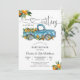 Celebre la llegada de niños gemelos con esta encantadora invitación de baby shower que presenta un camión azul vintage desbordante de preciosuras naranjas brillantes y exuberante vegetación. El divertido tema "¡Oh chicos! Dos pequeñas preciosuras" añade un toque alegre, perfecto para homenajear a los futuros padres. Diseñada con fuentes elegantes y un diseño limpio, esta tarjeta es ideal para celebraciones rústicas, cítricas o con tema de gemelos. Personalice fácilmente para su evento y cree un recuerdo que los invitados amarán.