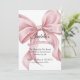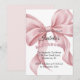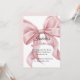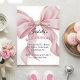 Celebra la dulce llegada de tu bebé con esta elegante invitación de baby shower con lazo de agua rosa coquette. Con un delicado lazo rosa blush pintado a mano, este diseño captura perfectamente la estética popular coquette y grandmillennial. Esta invitación chic y minimalista es ideal para una sofisticada fiesta de jardín, una clásica celebración en una sala de té o una reunión íntima en casa. Todos los campos de texto son totalmente personalizables, lo que te permite agregar fácilmente el nombre de la homenajeada, la fecha, la hora, la ubicación y los detalles de RSVP. Impresa en cartulina de alta calidad con un acabado suave, es un recuerdo atemporal para tu día especial.