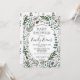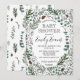 Casi puedes oler el pino y el eucalipto. Ramas de eucalipto de acuarela, ramas de pino, ramitas y una piña. Un diseño natural simple pero sofisticado para la temporada de invierno, o cualquier temporada. Combina esta tarjeta con un forro de sobre y una etiqueta de dirección de regreso a casa para una invitación de baby shower realmente rústica y terrenal.