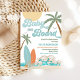 Celebra tu día especial con esta invitación tropical de baby shower con temática de playa que incluye palmeras, tablas de surf, olas del océano y un sol alegre. Diseñada con colores pastel suaves y fuentes juguetonas, esta invitación establece un ambiente relajado y costero perfecto para reuniones de verano. Personalízala con tus detalles para crear un recuerdo único que tus invitados amarán. Ideal para baby showers con temática de playa, esta tarjeta combina un diseño divertido con una fácil personalización para una celebración memorable.