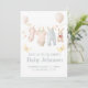 Celebra la próxima llegada de un pequeño con esta adorable invitación de baby shower que presenta un diseño de tendedero de ropa en suaves pasteles. Ilustrada delicadamente con artículos esenciales para bebés colgados de una cuerda - pequeños conjuntos, baberos y mantas - esta dulce tarjeta inspirada en acuarelas es perfecta para futuros padres que aman un tema de baby shower suave, caprichoso y atemporal.