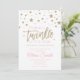 Invitación al Baby Shower de Twinkle Twinkle Little Star con brillo dorado y estrellas rosadas.