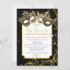 ¡Celebra la Nochevieja con estilo en un glamuroso baile de máscaras! Esta invitación presenta impresionantes máscaras doradas, espirales doradas hipnóticas y estrellas brillantes. ¡Prepárate para bailar y celebrar la llegada del nuevo año con estilo!