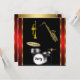 Fiesta de cumpleaños Música Dance tambores de invitación trompeta saxofónica oro rojo negro Invitación