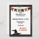 Personaliza la parte delantera y trasera de esta invitación de fiesta de Halloween creada en un fondo de grunge punteado negro, acentuado con un banner de fiesta decorativo, sombrero de bruja lindo y una telaraña. Simplemente edita tus detalles en el fácil editor de texto de zazzle. Agrega platos, tazas, servilletas y más de una gran colección de mezcla y coincidencia que coordina con este diseño.