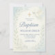 Esta elegante invitación al bautismo azul cuenta con una tranquila paloma acuática con una rama de olivo, una cruz dorada y suaves y frondosos acentos botánicos. Situado en tranquilizantes tonos pastel con fuentes serif y script tradicionales, esta invitación es una hermosa elección para celebrar el día especial de su bebé.