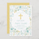 Esta invitación al personalizable de bautismo de bonito presenta un colorido marco de flores pastel ilustradas y una cruz a juego. El nombre, la fecha, la ubicación y los detalles de su evento pueden ser personalizados para su ocasión religiosa especial. Los colores son "neutrales en género" - verdes y amarillos. Grande para un niño y/o un chica - incluso mellizos o múltiplos.