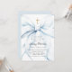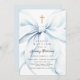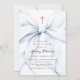 Mínima invitación al bautismo que incluye un elegante arco azul y una cruz de oro.