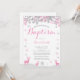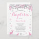 Invitación al bautismo Chica de venado de invierno. Copo de nieve blanco y rosado. Bautismo chica. Primera Comunión. Cristalización. Dedicación infantil. Fondo blanco. Para una mayor personalización, haga clic en el botón "Personalizar" y utilice nuestra herramienta de diseño para modificar esta plantilla.