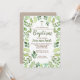 Invitación al bautismo de color de agua verde oliv