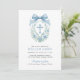 Esta clásica invitación al bautismo al estilo de los monogramas presenta una corona floral, una cruz azul y una disposición intemporal. Genial para ceremonias formales de bebés.