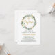 Tarjeta de invitación para bautizar/cristalizar al bebé. Este diseño presenta un ilustracion de follaje verde y dorado, bayas rojas en acuarela con efecto dorado en la parte superior