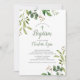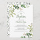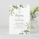 Hermosas invitaciones de bautismo con hojas de eucalipto verde suave y cruz sobre fondo blanco. Invierta nuestra invitación para ver una coordinación de nuevo para un toque especial. Visite nuestra tienda para ver toda nuestra colección de hojas.