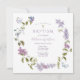 Invitación al bautismo de lavanda y lilac con colinas de agua y mariposas. Personalice su información o haga clic en "Haga clic en el personalizar más adelante" para editar estilos de fuente, tamaño y colores.