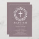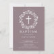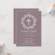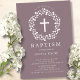 Hermosas invitaciones de bautismo con una delicada corona floral y cruz sobre un fondo malva. Invierta nuestra invitación para ver una coordinación de nuevo para un toque especial. Visite nuestra tienda para ver toda nuestra colección religiosa.