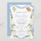 Invitación al bautismo de niños con flores azules en español, niño invitación de Bautizo para con flores verdes