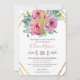 Marco geométrico dorado con floral rosa, tarjeta de invitación al bautismo de cruz dorada para bebé.