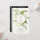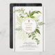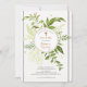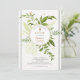 Hermosa invitación inspirada en la naturaleza, con un marco dorado rodeado de manchas de vegetación. Los verdes son delicadamente pintados a mano en acuarela. Un simple círculo dorado rodea tu texto anunciando tu día especial de bautismo con una cruz de oro para activarlo. Un diseño sencillo en unos bonitos tonos verdes. Tono diagonal en franjas de tono verde en el reverso.