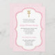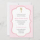 Invitación al bautismo o a la Santa Comunión con diseño coronado y borde rosa y dorado del bebé.
