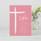 Esta moderna invitación al bautismo rosa presenta un elegante diseño de cruces, perfecto para celebrar este hito religioso especial. El esquema de color rosa oscuro añade un toque de feminidad y gracia a la invitación, lo que lo hace ideal para una ceremonia de bautismo de chicas jóvenes. El diseño, sencillo pero sofisticado, impresiona a los huéspedes y da la pauta para un evento memorable.