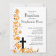 Nuestro elegante bautismo sagrado y floral es una moderna y divertida primera impresión para el especial día de bautizo de su bebé. Nuestra invitación en blanco y naranja presenta un bonito marco floral naranja, decorado con un elegante fondo blanco. La parte trasera de nuestro hotel tiene un color que le da un toque especial. Diseño moderno y divertido para impresionar a sus huéspedes. La invitación perfecta para una primera comunión sagrada, bautismo, bautismo o fiesta de confirmación. Visita nuestra tienda para elegir colores adicionales para un bautizo de bebé, bautismo de bebé, bautismo de bebé y bautizo de bebé. ©Mujka